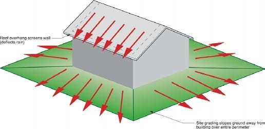 그래서 집은 강수에 대비해 경사면을 두어 빗물을 집에서 멀리 보내야만 한다.