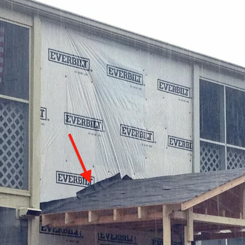 그래서, 벽체에 설치되는 모든 건축재료들은 위의 것이 아래의 것을 덮도록 되어야만 한다.