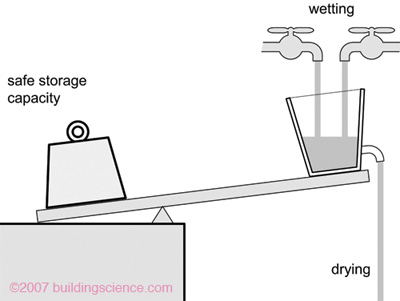 건축재료의 습기는 배출될 수 있는 속도보다 더 빨리 들어올 때 재료에 축적이 된다.