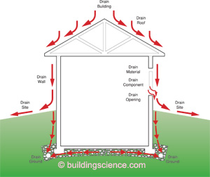 건물의 내구성과 곰팡이의 방지를 위해선 양이 가장 많은 빗물부터 관리하는 것이 가장 중요한 요소이다.