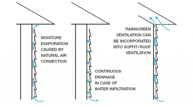 그건 어떤 종류의 외장재들은 비를 맞으면 습기를 저장하는 역할을 하기 때문이다.