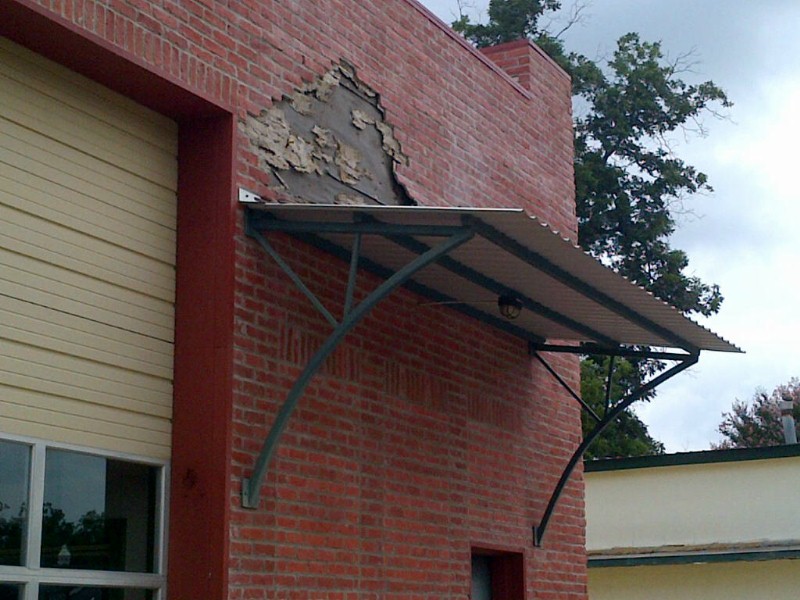 (습기를 머금고 있는 벽돌치장벽 자체도 습기로 인한 피해가 아래 사진처럼 발생한다)