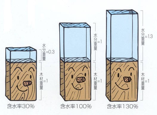함수율은 나무에서 물기를 완전히 뺀 상태를 기준으로 나무가 얼마나 물을 함유하고 있는 정도를 말하는데,