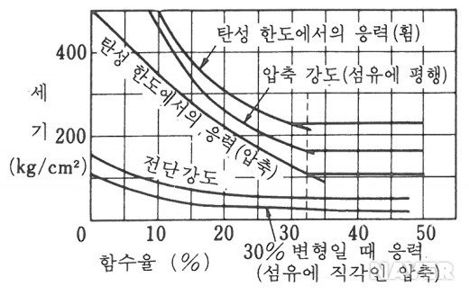 이 섬유 포화점을 기점으로 나무는 수축 등의 변형을 시작하며 강도가 급격히 강해지기 시작한다.