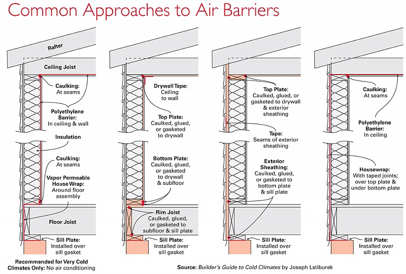 어떤 건물도 공기차단이 완벽하지는 않기 때문에 주택건축의 목표는 그것을 최소화 하는 것이다.