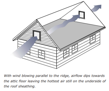 또, 바람이 양쪽 박공벤트를 통과하여 불더라도 지붕 속의 전체 공기가 순환되기 보다는