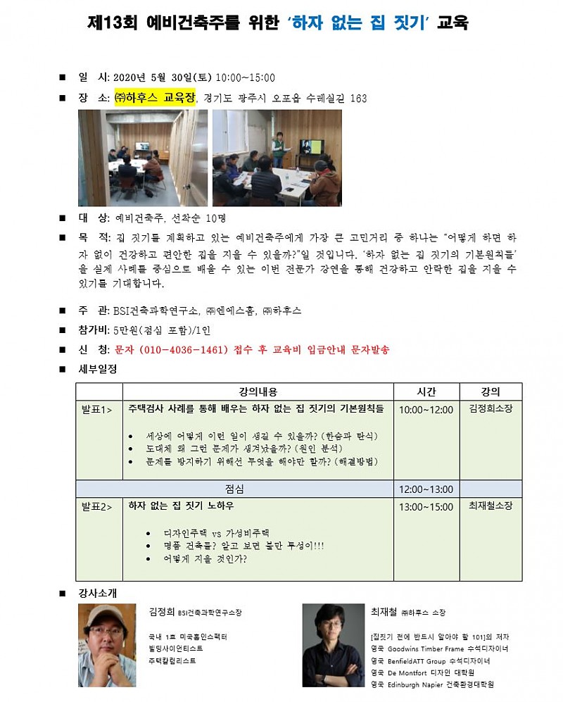 5월 예비건축주를 위한 하자없는 집짓기 과정공지