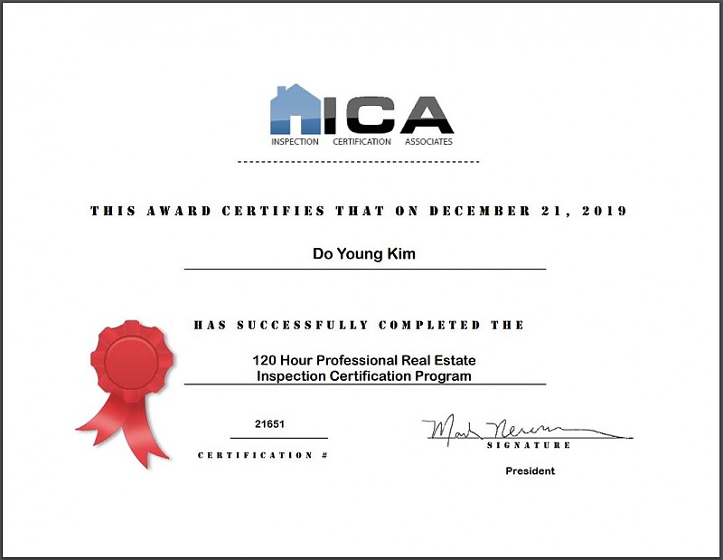 본 연구소의 김도영 매니저의 ICA 홈인스펙션 과정 수료를 축하합니다.