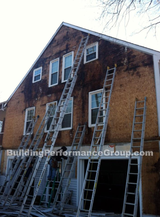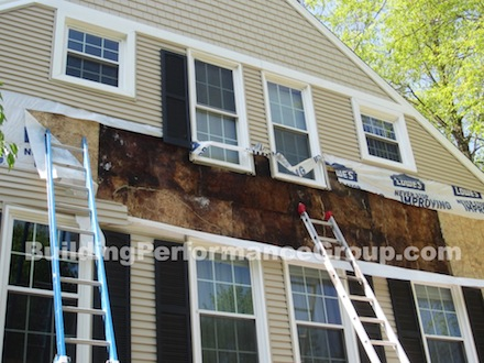 기존 벽체안에 있던 습기들이 새로 덮은 OSB를 적시고 하우스랩은 오히려 벽체가 더 빨리 마르는 것을