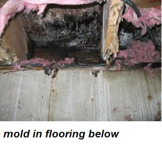 그 부분을 띁어보았더니 벽안쪽에 습기가 가득차고 곰팡이가 피어있다.
