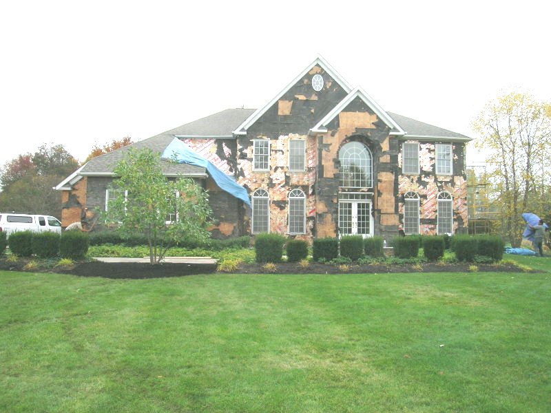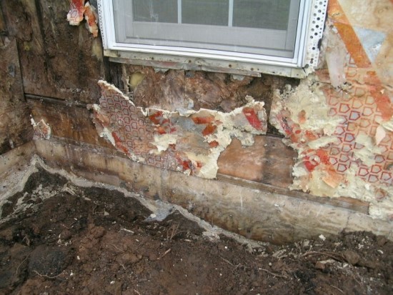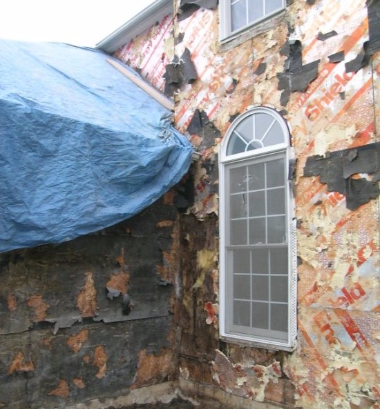 스터코 아래에 설치되었던 단열판들과 OSB들이 전부 상해 있는 모습을 볼 수가 있다.