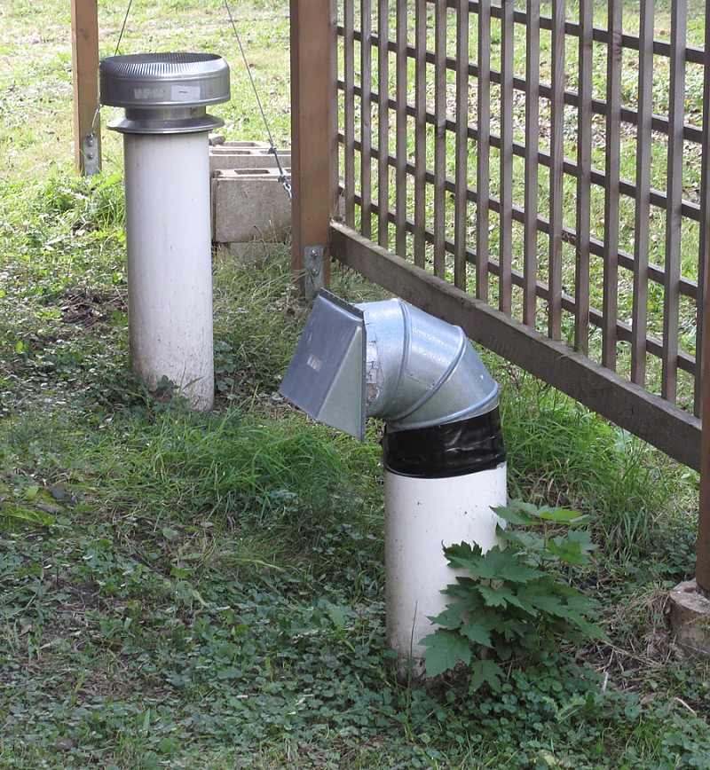 아래 사진은 다른 집인데 비슷한 형태라고 한다. 환기구가 땅 밑으로 나와 외부에 설치된 모습을